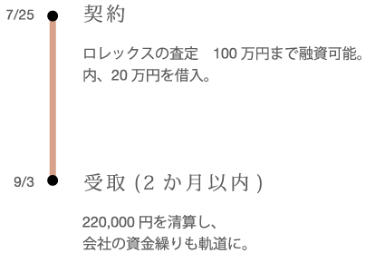 資金繰りの問題から自分が持っているバブル期に購入した18金製のロレックスの腕時計をまるいさんに預けて会社の資金繰りに充てることにしました。